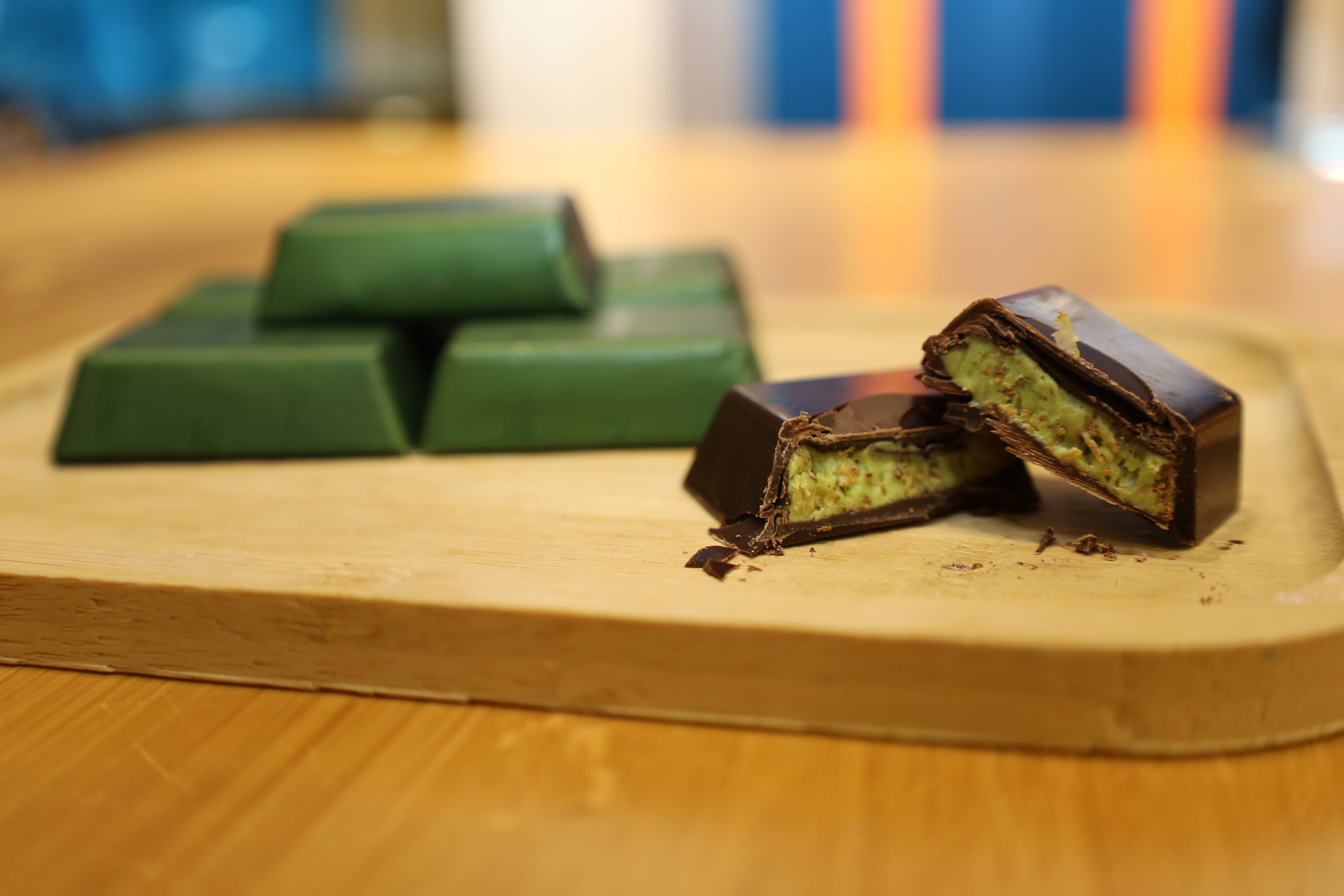 Edle dunkle Schokolade mit feiner Pistaziencreme, verfeinert mit knusprigen Kunafa-Stückchen und ganzen Pistazien. Dubai Pistazien-Zartbitterschokolade vereint orientalische Raffinesse mit intensivem Schokoladengeschmack – ein luxuriöser Genussmoment.