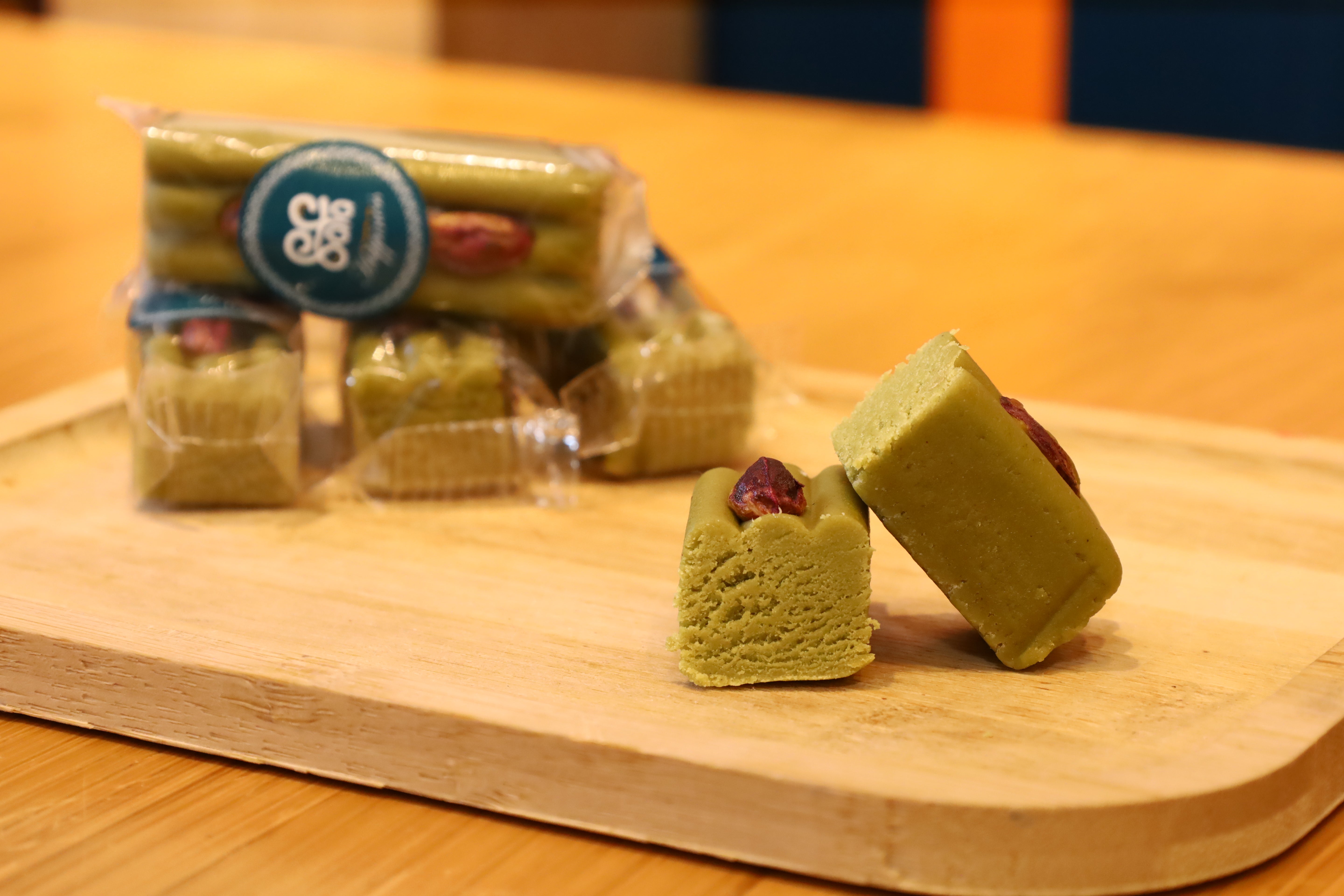 Finest green marzipan made from almonds, decorated with a whole pistachio. Green marzipan pistachio offers velvety almond sweetness with the crunchy contrast of the pistachio – an elegant oriental treat.